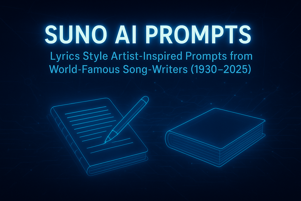 Each prompt is artist-inspired, guiding AI to emulate the themes, tone, phrasing, slang, and storytelling that defined different generations of songwriters and vocalists. These prompts highlight not only the lyrical content itself, but also the emotions, imagery, and cultural context that shaped iconic songs over nearly a century.
